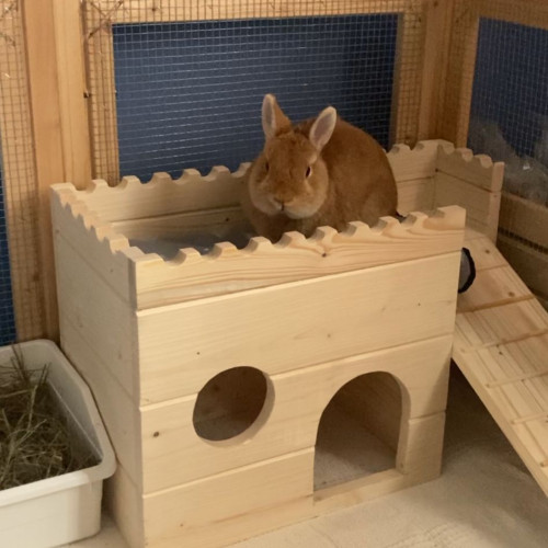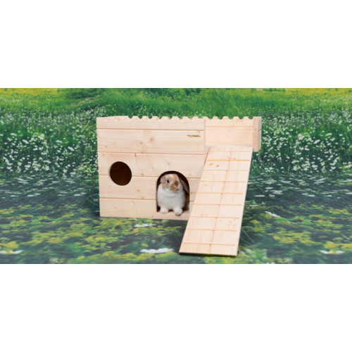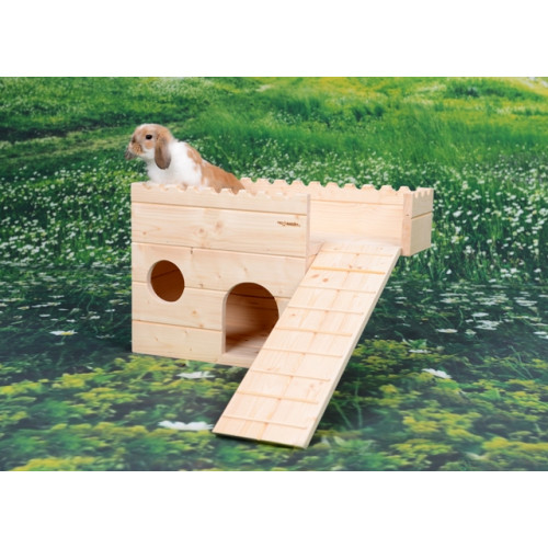 Stylový domeček - letohrádek - do výběhu vašeho mazlíčka. Prostorný domeček s okénkem a vstupem nabízí příjemný úkryt uvnitř, ale takémožnost lehnout si nahoru na terasu či dolů do úkrytu pod balkónek. Letorádek je možné vyrobit i s podlahou, ev. i přizpůsobit rozměry hradu vašemu individuálnímu přání. Jakékoli z těchto přání prosím uveďte do poznámky k objednávce.