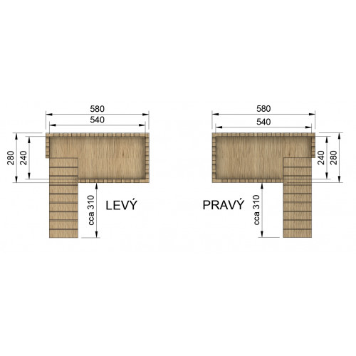 Letohrádek nabízíme v levé a pravé verzi. Pravá verze má rampu vpravo, levá pak vlevo.
