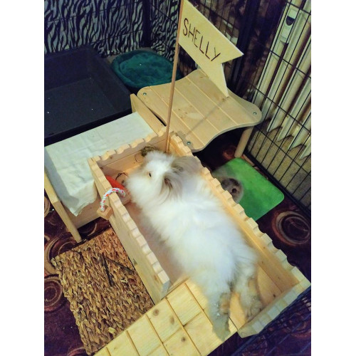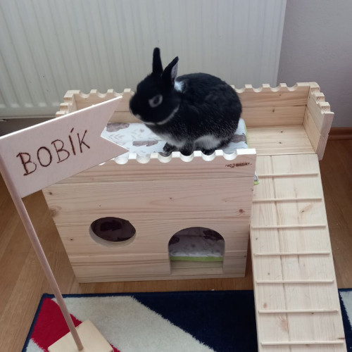 Pokud váš mazlíček rád odpočívá na měkkém nebo trpívá na otlaky, doporučujeme k letohrádku náš ručně šitý pelíšek- oboustrannou podložku v krásném designu s králíčky.