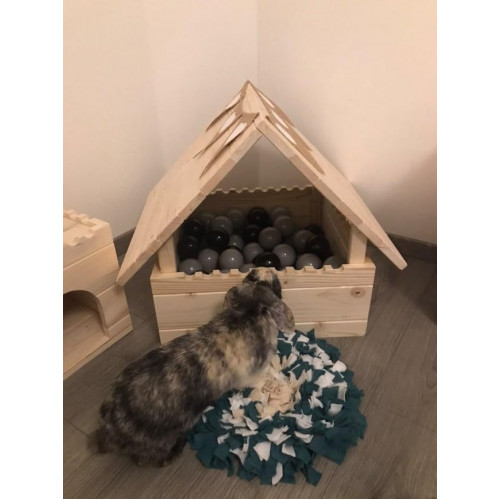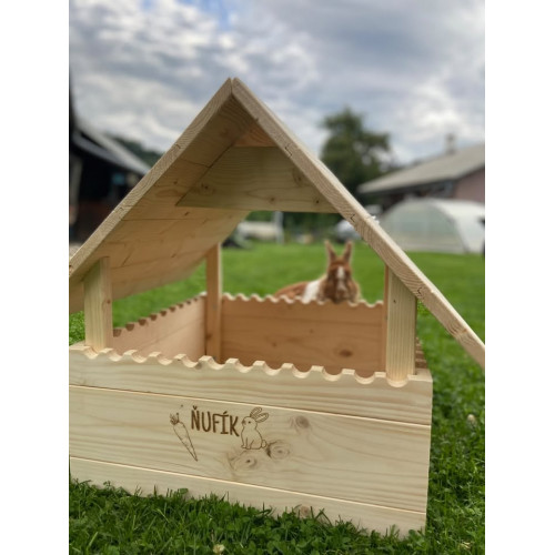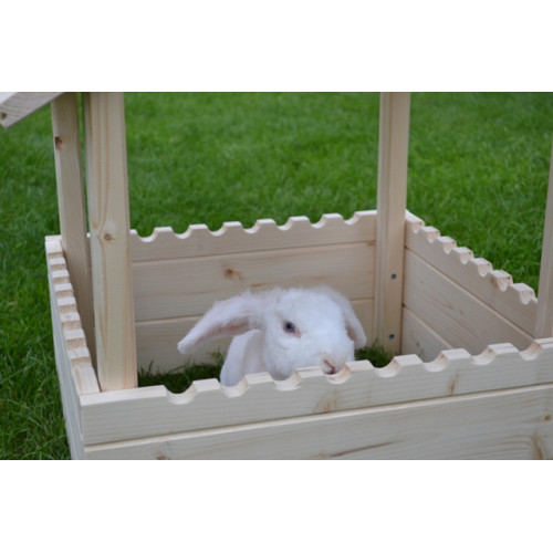 Řada mazlíčků ze své přirozenosti ráda tráví čas tím, že hrabe. Králíci se rádi přehrabují v písku, hlíně nebo třeba listí. Aby bylo možné tuto zábavu mazlíčkům dopřát i v domácím prostředí, vyvinuli jsme pískoviště. Je to bedýnka se dnem seshora krytá stříškou proti dešti a slunci v oblíbeném "hradním" designu s cimbuřím. Stačí dodat jen písek, pískoviště naplnit a zábava může začít! Na podlahu doporučujeme umístit např. staré linoleum či jinou podložku pro delší životnost našeho výrobku a zamezení vypadávání písku škvírami. Pískoviště lze umístit jak do vnitřního, tak i venkovního výběhu. Pískoviště z důvodů dopravy dodáváme demontované, jednotlivé díly jsou popsány tak, aby sestavení bylo velmi snadné.
