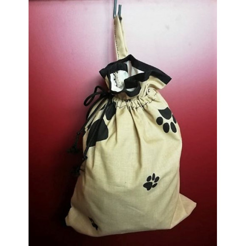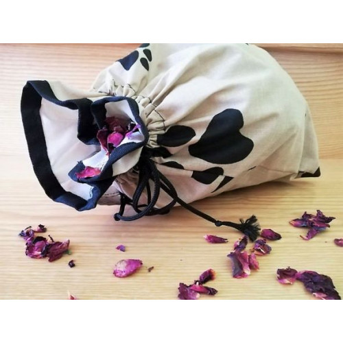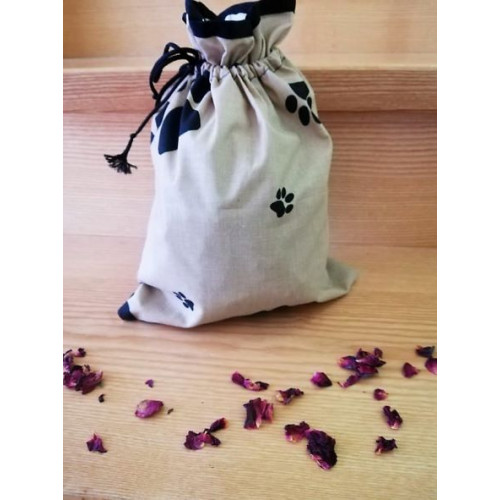 Také se vám hromadí doma plastové pytlíky s bylinkami a sušenými plody pro vaše miláčky? Víte, že igelitové pytlíky nejsou pro skladování bylinek nejvhodnější? Proto přicházíme s praktickým ručně šitým plátěným pytlíkem, který je jednak ekologický, jednak zabraňuje zapaření a skvěle uchová chuť bylinek. Hodí se na uskladnění sušených bylinek, šípků, křížal, sušené zeleniny, větviček atd. pro vaše miláčky. Pytlík je opatřen praktickým poutkem pro zavěšení a stahovací šňůrkou. Nabízíme jej v rámci naší kolekce v oblíbeném designu s tlapkami. Pytlík je ušitý z kvalitního materiálu, dodáván spolu se štítkem na popis jeho obsahu.K bylinkovníku lze také doobjednat karabinu k zavěšení.