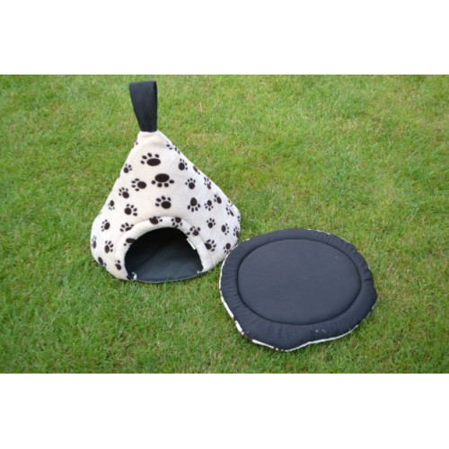 Ručně šitý pelíšek jurta do klece či výběhu pro opravdové "fajnšmekry" v originálním designu je ideálním místečkem pro odpočinek vašeho mazlíčka, poskytuje příjemně uzavřený prostor a pocit soukromí. Jurta pěkně drží tvar a díky poutku se i snadno přenáší. Aby byla údržba pelíšku co nejsnazší, je opatřen oboustranným polštářkem, který lze vyjmout a samostatně vyprat. Tento pelíšek je ideální zejména pro menší mazlíčky jako třeba morčátka.