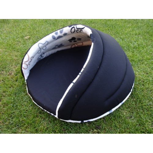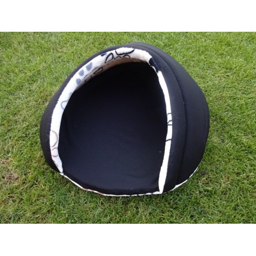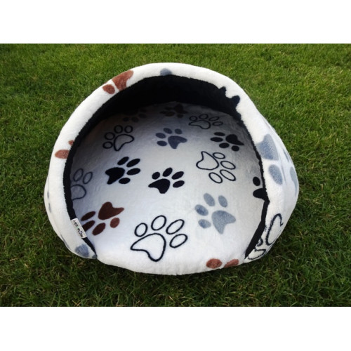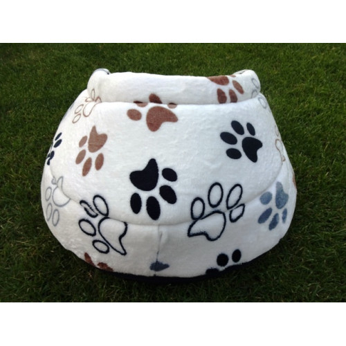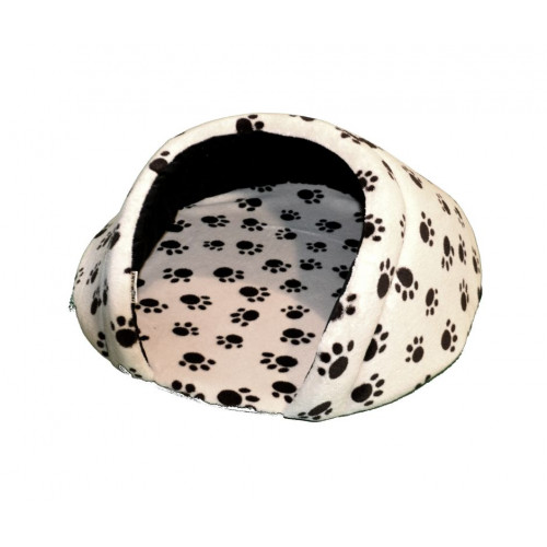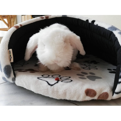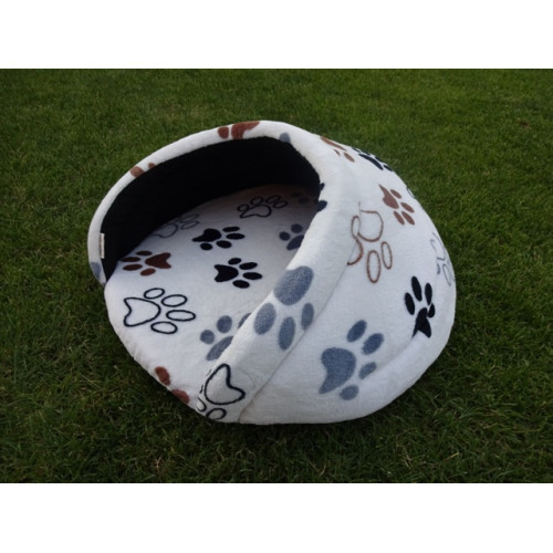 Originální ručně šitý pelíšek se snadným vlezem a stříškou připomíná útulnou noru. Bezvadně se hodí jak do klece, tak i výběhu. Tento tvarově zajímavý pelíšek v originálním designu s tlapkami je ideálním hřejivým pohodlným místečkem pro odpočinek vašeho mazlíčka. Navíc je bezbariérový, takže se hodí i pro mazlíčky s pohybovými obtížemi. Další jeho výhodou je, že se dá použít oboustranně - v zimě se bude hodit teplý vnitřek z fleecu, v létě zase chladivý z autopotahoviny. Pelíšek je vyplněn molitanem a pěkně drží tvar. Spodní plocha je pevně spojena s konstrukcí pelíšku, snadno se však na praní dá její vnitřní výplň vyjmout pomocí zipu. Ideální je zejména pro drobnější až středně velké mazlíčky jako morčátka, teddíky, činičily, fretky, menší plemena psů a koček atd.