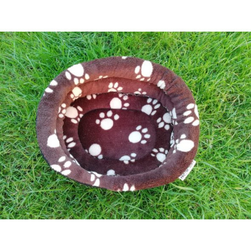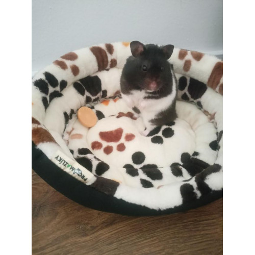 Ručně šitý oválný klasický pelíšek se sníženým vstupem do klece či výběhu v originálním designu s tlapkami - ideální hřejivé pohodlné místečko pro odpočinek vašeho mazlíčka. Pelíšek je vyplněn molitanem a pěkně drží tvar. Ideální je zejména pro drobečky jako morčátka, potkánky, křečky...