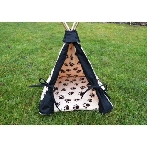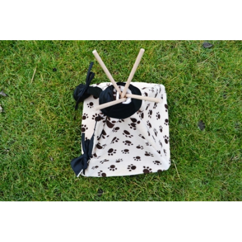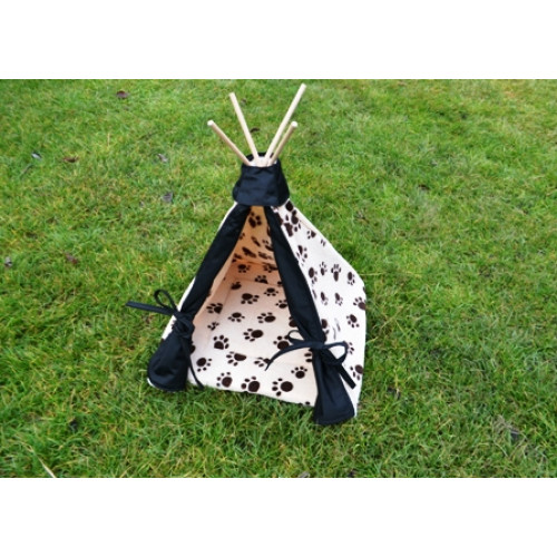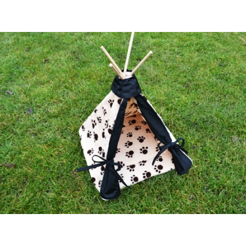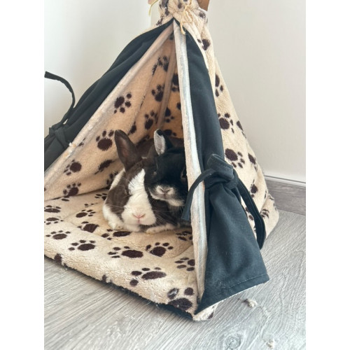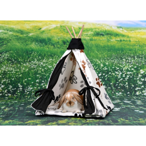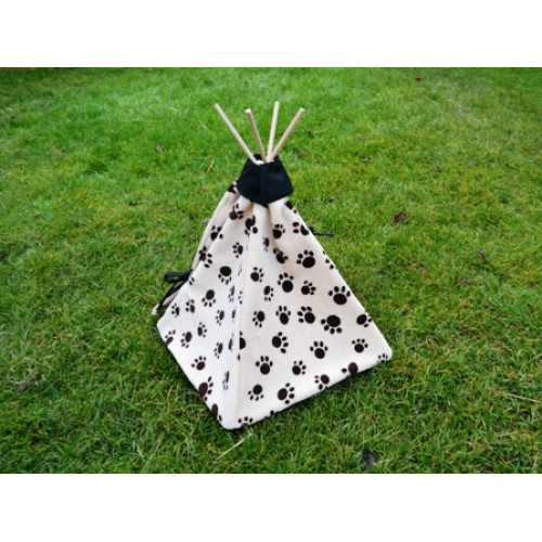 Ručně šitý skladný pelíšek "týpí" do klece či výběhu pro opravdové "fajnšmekry" v originálním designu je ideálním místečkem pro odpočinek vašeho mazlíčka, poskytuje příjemně uzavřený prostor a pocit soukromí. Základna "týpí" je vyplněna molitanem a pěkně drží tvar. Součástí výrobku jsou 4 bukové tyče, které se zastrkají do předpřipravených tunýlků, látka se na nich vypne a pěkně tak konstrukci "týpí" zpevní. Zároveň je tento pelíšek velmi snadný na údržbu i transport- tyče stačí jednoduše vytáhnout a celý pelíšek pohodlně vyprat či přenést na jiné místo. Ideální zejména pro drobnější až středně velké mazlíčky jako morčátka, teddíky, činičily, fretky, menší plemena psů, kočky atd.