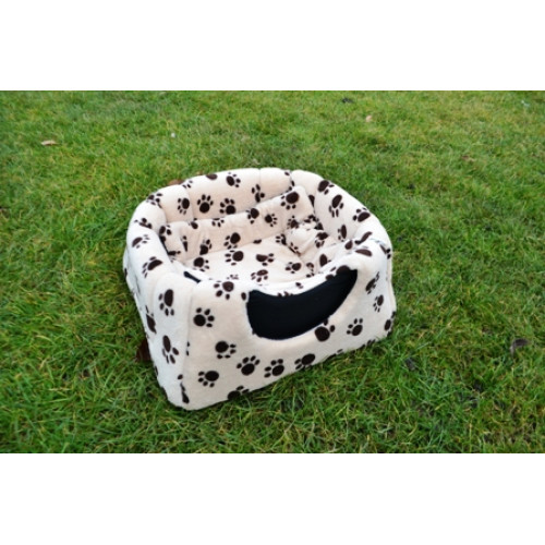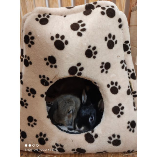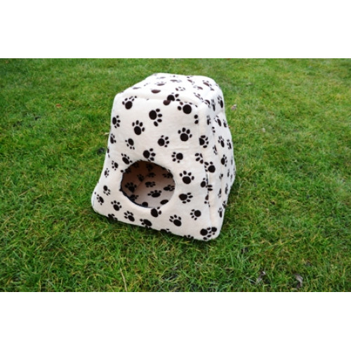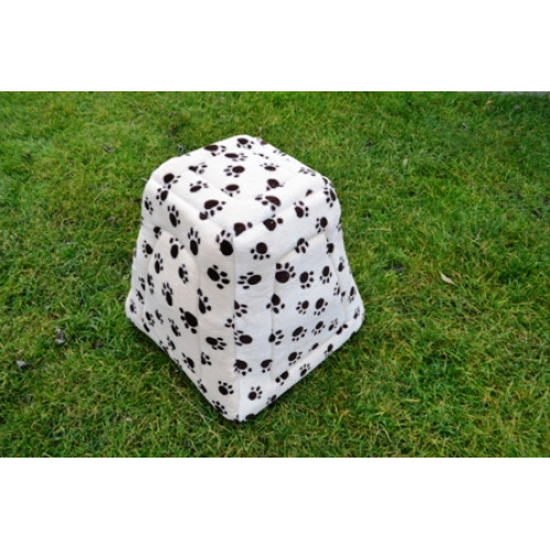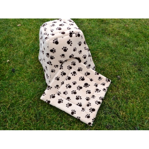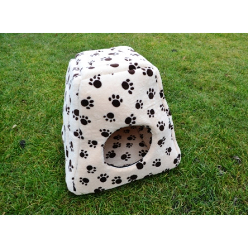 Ručně šitý variabilní pelíšek "pyramida" například do výběhu vašeho miláčka v originálním designu s tlapkami - ideální místečko pro odpočinek vašeho mazlíčka. Poskytuje příjemně uzavřený prostor a pocit soukromí. Pyramida je vyplněna molitanem a pěkně drží tvar. Součástí výrobku je i vyndávací tmavý polštářek, který usnadní údržbu pelíšku. Pyramida je výborná také na cesty- je možné ji totiž složit a vytvořit tak otevřený pelíšek, do kterého se vloží polštářek zevnitř pyramidy. Ideální zejména pro menší, ale i středně velké mazlíčky jako morčátka, teddíky, činičily, fretky, psy, kočky atd.