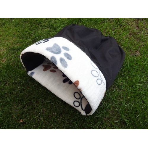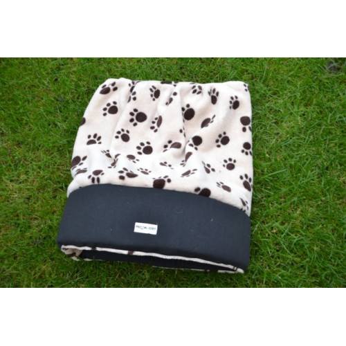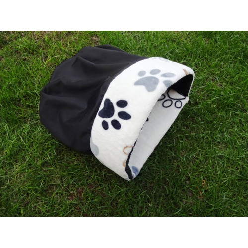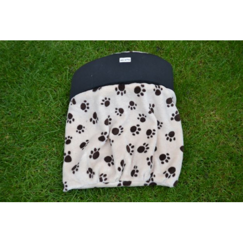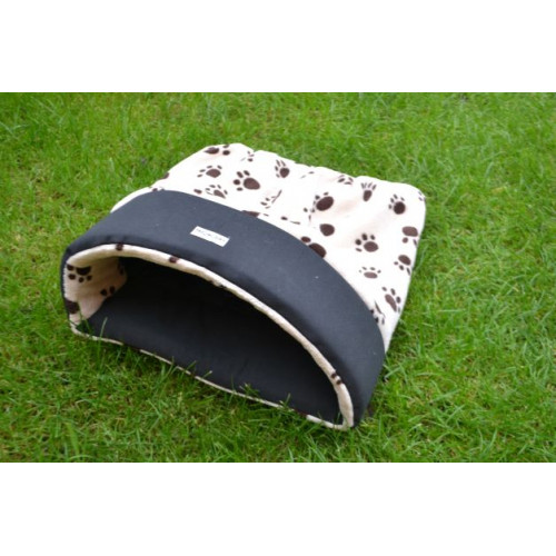 Ručně šitý pelíšek tulipytlík do klece či výběhu v originálním designu s tlapkami - ideální místečko pro odpočinek vašeho mazlíčka, poskytuje příjemně uzavřený prostor a pocit soukromí. Vstup tulipytlíku je vyplněn molitanem a pěkně drží tvar, umožňuje tak snadný vstup. Velkou výhodou je možnost oboustranného použití tulipytlíku - z každé strany má o trochu jiný design. Ideální zejména pro drobnější mazlíčky jako morčátka, teddíky, činičily, fretky, menší plemena psů a koček atd.