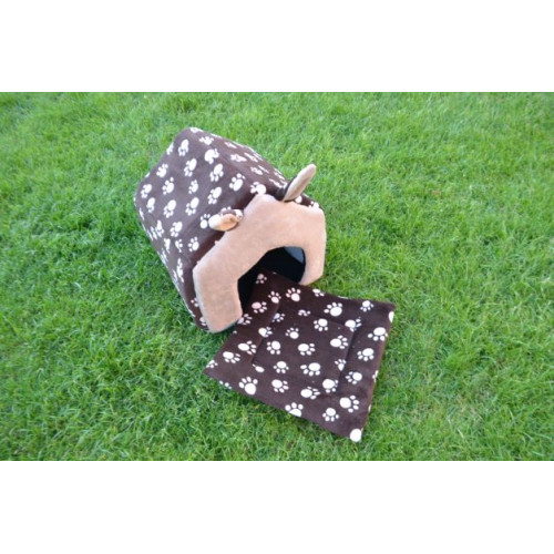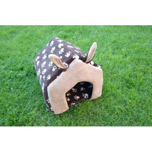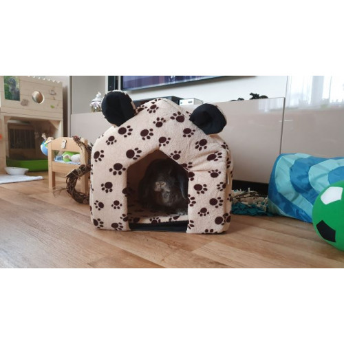 Prostorný ručně šitý pelíšek s ušima na první pohled upoutá svým roztomilým a originálním designem. Hodí se do větší klece, lépe se však bude vyjímat ve výběhu.Stane se ideálním místečkem pro odpočinek vašeho mazlíčka,kterému poskytne příjemně uzavřený prostor a pocit soukromí. Součástí výrobku je i vyndávací oboustranný polštářek, který usnadní údržbu pelíšku. Ideální zejména pro malé až střední mazlíčky jako morčátka, teddíky, činičily, fretky, menší plemena psů a koček atd.