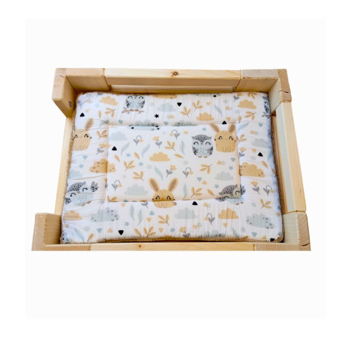 K palandě si lze přiobjednat i měkké polštářky - podložky pro ještě příjemnější poležení. Podložky ke gauči jsme zvolili v jemným pastelových tónech tak, aby se hodil do každého interiéru. Z jedné -letní - strany je chladivá balvna s potiskem králíčků se sovičkami, z druhé - teplé/zimní - strany je měkkoučký wellsoft. Polštářek lze prát v pračce, doporučujeme nesušit v sušičce.