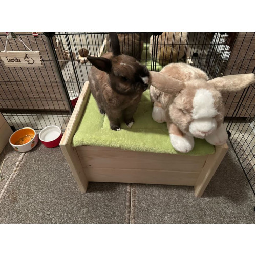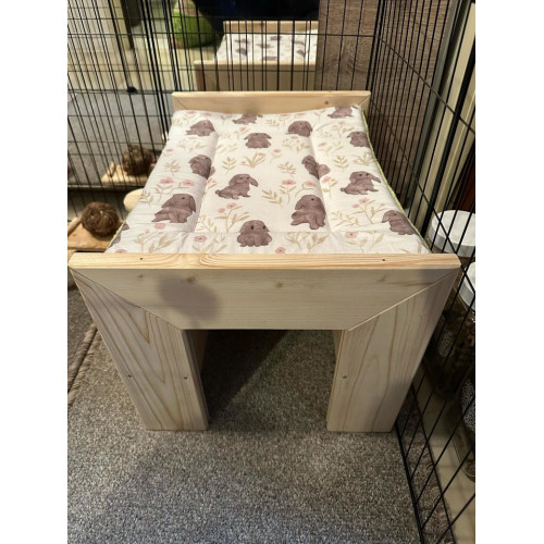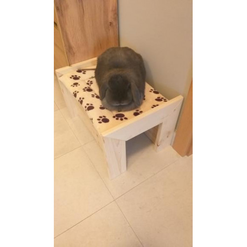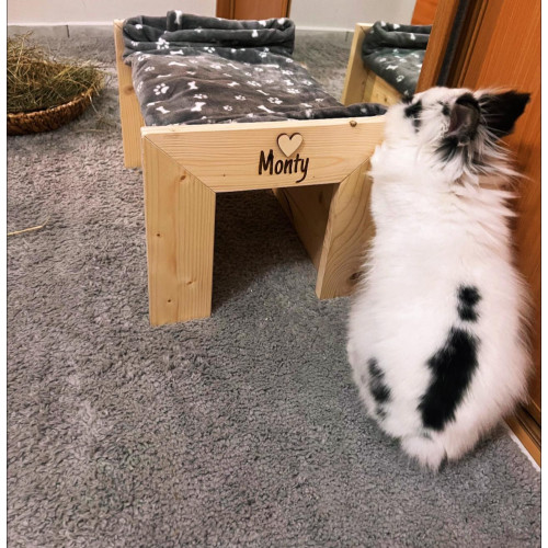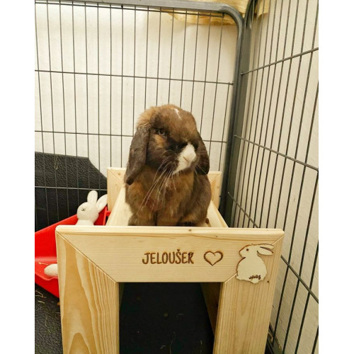 Pohodlný pelíšek ve tvaru postýlky pro vašeho miláčka - poležet/posedět si může nahoře na plošince, ale také pěkně v úkrytu tunelu pod ní. Na přání i se jménem vašeho králíčka (viz položka "vypálení obrázku na přání").