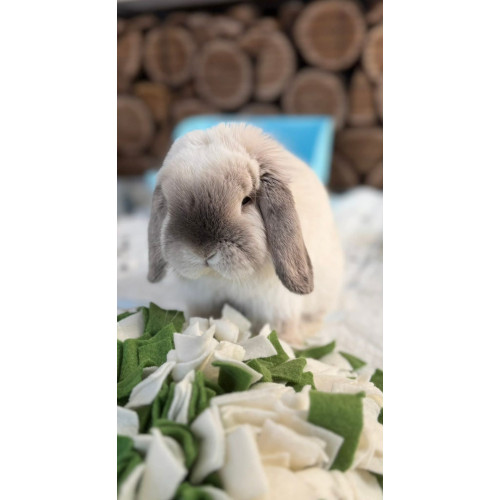 Zajímavá interaktivní hračka pro pejsky, kočky, ale i zakrslé králíčky, morčata, prostě řadu zvířecích kamarádů, kteří rádi čmuchají a objevují své odměny. :-) Do koberečku se schovají mezi jednotlivé třásně pamlsky, úkolem zvířátka je je v hustém koberci najít. Čmuchání podporuje aktivitu a inteligenci, pomáhá odbourávat agresivitu. Kobereček se také hodí k beztrestnému kousání, trhání a jiným tolik oblíbeným destrukčním činnostem. ;-)