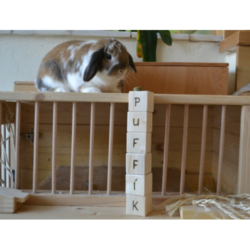 Nejen děti baví nekonečné shazování komínů z kostek! Zkuste tuto zábavu se svými mazlíčky! Kostky se také báječně hodí k okusování a broušení zoubků...Kostky jsou vyrobeny ze smrkového dřeva, na každou vypálíme jedno písmenko ze jména vašeho mazlíčka- jméno prosím napiště do poznámky k objednávce. Objednete tedy tolik kostek, kolik písmen má jméno vašeho mazlíčka!