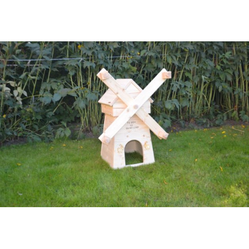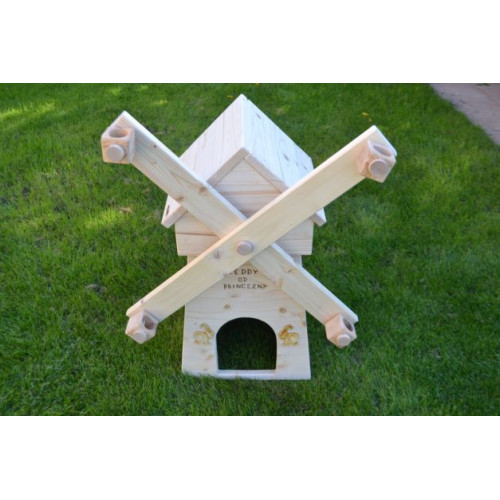 V tomto výrobku jsme propojili originální domeček pro mazlíčka s hračkou, v neposlední řadě se pak jedná i o krásný a estetický doplněk zahrady/výběhu. Domeček pro vašeho mazlíka je základ, který by neměl chybět v žádné ubikaci. Uvnitř mlýna se nachází místo k nerušenému odpočinku. :-)