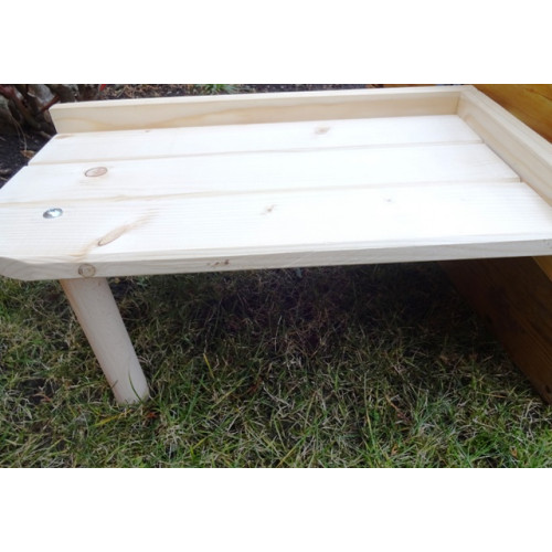 45X26 cm, okraj vysoký cca 7cm, výška podpěry 22cm. Police se při sestavení nachází ve výšce 25cm od dna klece.