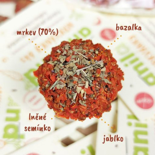 Zdravé bezobilné mlsání pro králíčky, morčátka, křečky a ostatní hlodavce od ANILANDU, které Puffík určitě doporučuje! Mrkvové, přírodní, zdravé, bezobilné a ručně tvořené pamlsky pro králíky a hlodavce (pro křečky, křečíky, morčátka, myši a potkany) s bazalkou. Mrkvánek je svým složením skvělým doplňkem jídelníčku vašeho mazlíčka. Je to chutný pamlsek, který brousí zoubky králíčka či hlodavce. V balení najdete 6 kusů, podávejte jako příležitostný pamlsek např. 1 ks / 5-7 dní.