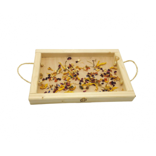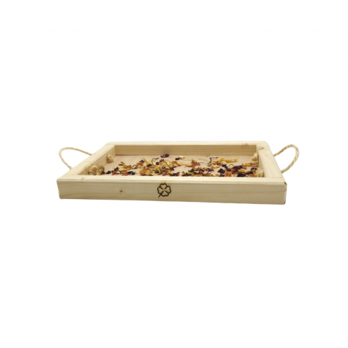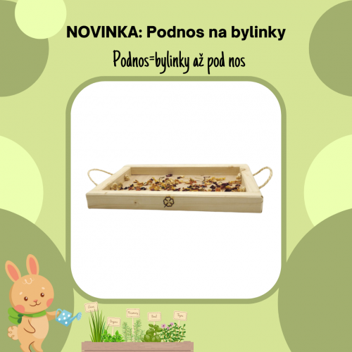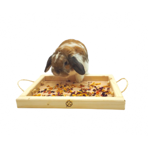 Také vaši králíčci/morčátka milují čerstvé nebo sušené bylinky a nejrůznější stonky nebo natě? Také se v nich rádi přehrabují, aby našli ty úplně nejlahodnější kousky? :-) Pak se vám jistě bude hodit náš podnos na bylinky. S naším podnosem budou bylinky doslova až pod nosem! :-) Náš podnos není jen praktickou, ale zároveň estetickou možností, jak králíčkům/morčátkům servírovat nejrůznější bylinky a natě, které se na mističky špatně vlezou. Náš podnos je vyroben z přírodních materiálů, je tedy zcela bezpečný a nezávadný. Po straně je ozdoben roztomilým čtyřlístkem