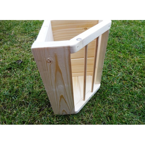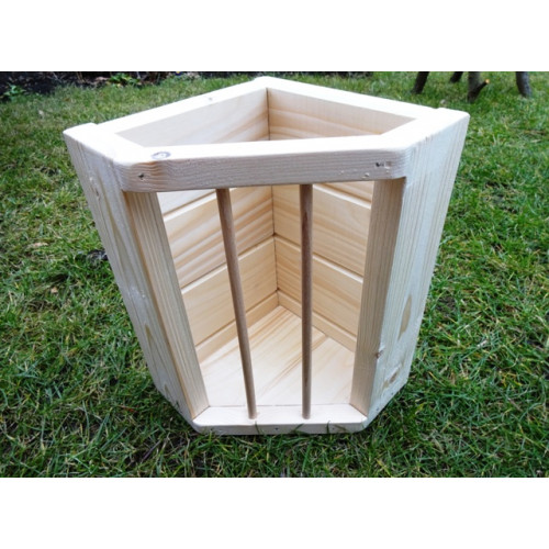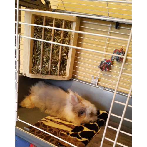 Praktický seník k zavěšení na vntřní roh klece či výběhu. Ideální řešení při nedostatku místa. Seník se jednoduše přišroubuje svými dřevěnými lištami k mříži klece či výběhu. Mazlíček si seno či bylinky pohodlně vytahuje mezi 5 cm od sebe vzdálenými šprušlemi seníku. Seník navíc eliminuje nepořádek z padajícího sena vně klece.