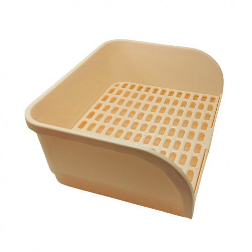 Praktické a prostorné WC s roštem pro králíčky, kterým malé toaletky prostě nestačí. Plastový rošt má dostatečně velké otvory pro propadnutí výkalů, rošt je skvěle vyspádovaný, nedrží se tedy na něm žádné loužičky. Lze jej snadno nacvaknout na toaletu, zároveň ale na ní pevně drží, a tudíž se mazlíček dovnitř toalety k podestýlce nedostane. Toaleta má vyšší okraje, hodí se tedy bezvadně pro volné umístění v místnosti, místo si najde i v ohrádce ideálně hned pod závěsným seníkem, kde králíček tráví svůj den nejčastěji. Nabízíme v neutrální béžové barvě.