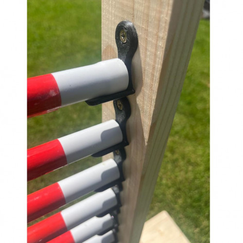 Základní jednoduchá překážka pro králičí hop. Aby bylo dosaženo maximální stability překážky, je umístěna na 8 kluzácích s možností úpravy výšky při nerovnosti terénu až do 2 cm. Součástí výrobku je 6 plastových 70 cm dlouhých pruhovaných tyček.