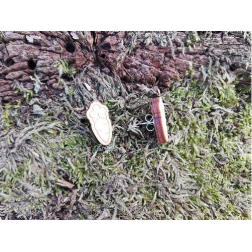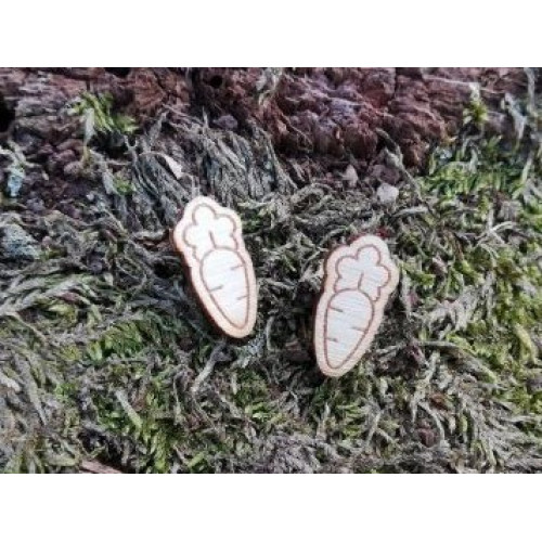 Naprosto originální náušnice z naší nové kolekce pro všechny milovnice králíčků a morčátek. Kvalitní přírodní provedení z bukové překližky. Obrázek mrkvičky je vypálený, celá náušnice - puzeta - je pak vyřezaná dooriginálního tvaru. Dodáváme včetně kovových zarážek. Prodáváme v dárkovém organzovém pytlíčku.